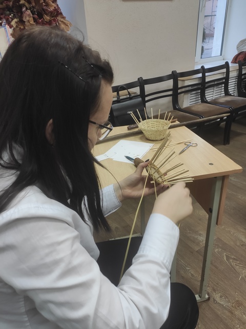 В рамках декады цикловой комиссии музыкального воспитания 20 ноября А.М.Бесько провел открытое индивидуальное занятие по лозоплетению с учащейся Н-22 группы специальности «Начальное образование» Фандо Дарьей. В ходе занятия Анатолий Михайлович обратил внимание на этапы подготовительной работы, продемонстрировал инструменты и приспособления при работе с лозой, назвал и показал виды плетения, озвучил правила техники безопасности. После теоретического объяснения и практического показа приёмов работы педагогом учащаяся самостоятельно на практике закрепляла полученные знания – выполняла плетение корзинки. В конце занятия Дарья представила готовое изделие, оценила степень самостоятельности при выполнении работы, качество плетения. Мероприятие было интересным, познавательным, присутствующие получили положительные эмоции.