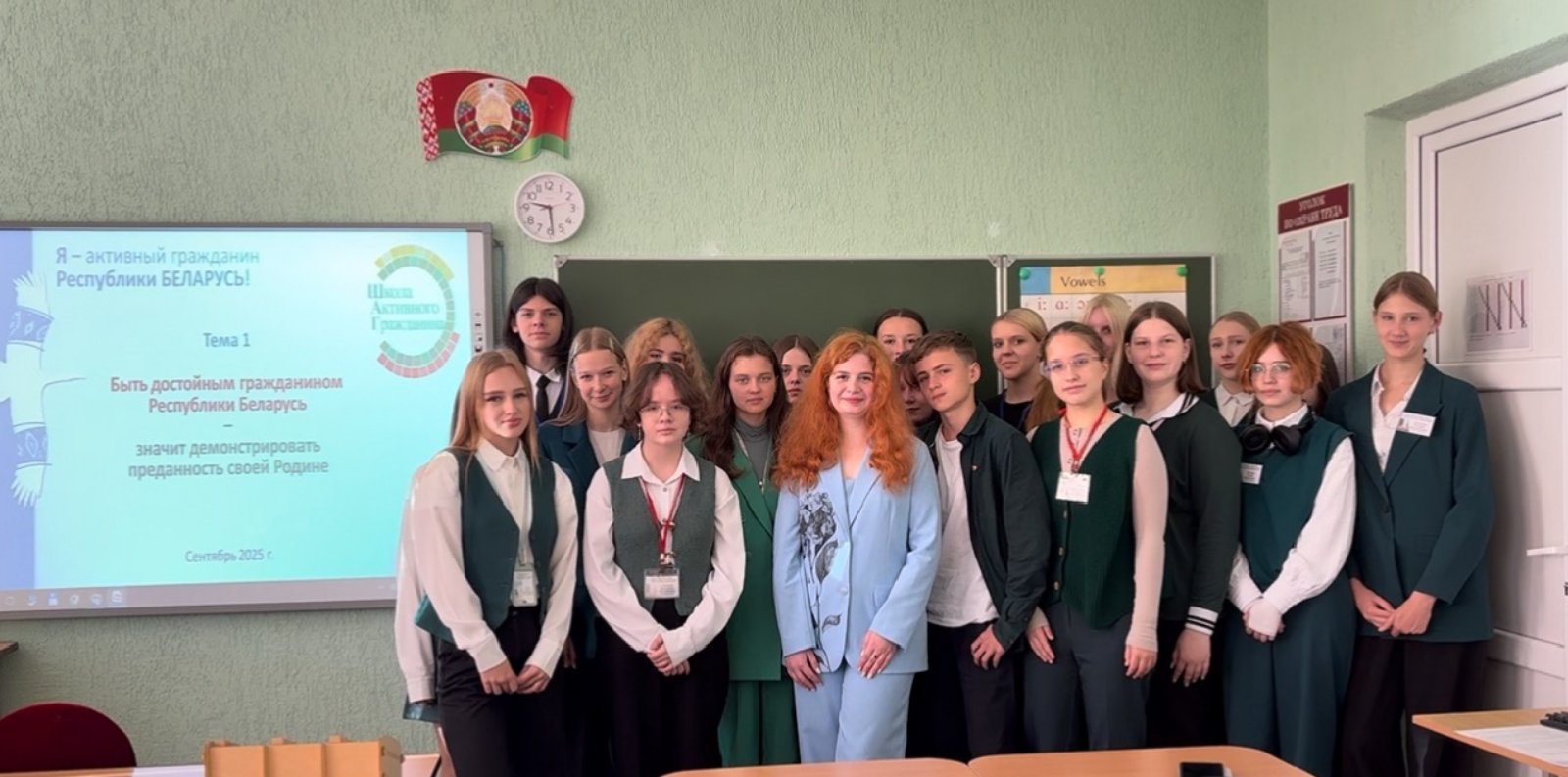 В рамках информационно- образовательного проекта "ШАГ" в И-11 группе прошёл информационный час на тему " Быть достойным гражданином Республики Беларусь- значит демонстрировать преданность своей Родине". В мероприятии приняла участие Тишевич Ксения Андреевна, член Молодежного совета при Палате представителей Национального собрания Республики Беларусь, учитель физики, информатики и математики.