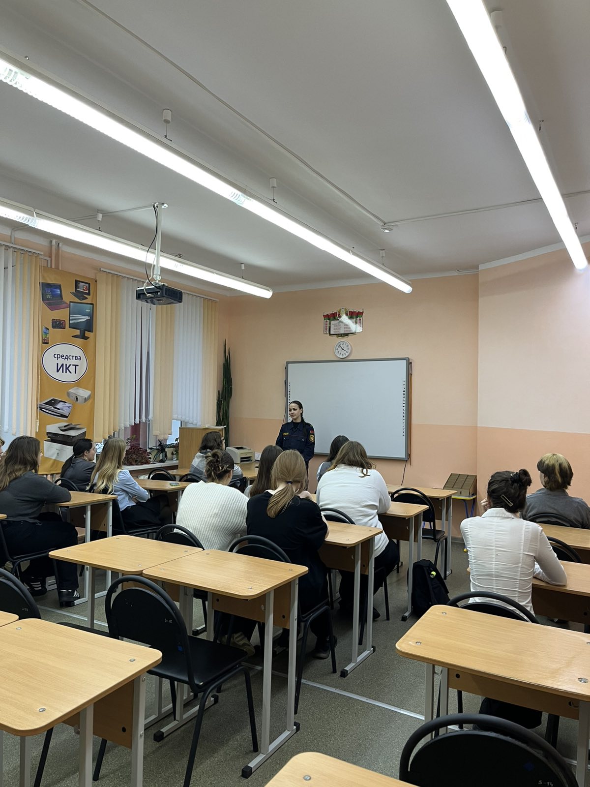 19.11.2025 для учащихся Г-27 группы была проведена встреча с сотрудником правоохранительных органов лейтенантом Швайко Мариной Витальевной. Встреча была посвящена теме «Права ребенка-права человека». Сотрудник ИДН рассказала об основных правах ребенках в нашем государстве, а также затронула вопросы профилактики противоправного поведения (электронные сигареты, мошенничество в интернете, правила общения в социальных сетях и мессенджерах).