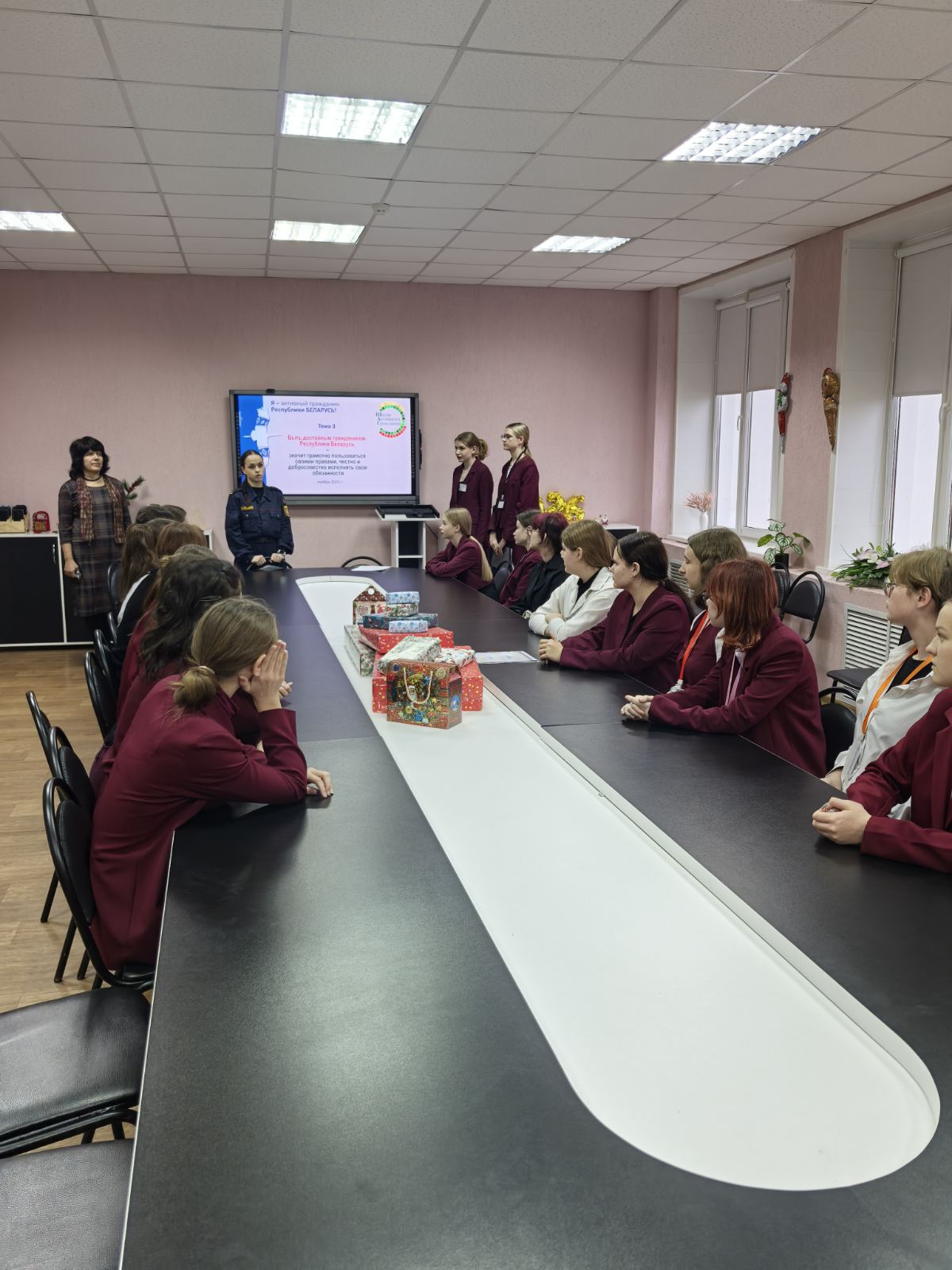 В рамках информационно-образовательного проекта "ШАГ" в Н-13 группе прошел информационный час на тему: "Быть достойным гражданином Республики Беларусь – значит грамотно пользоваться своими правами, честно и добросовестно исполнять свои обязанности". На мероприятие была приглашена инспектор ИДН Швайко Марина Витальевна, которая выступила перед ребятами с разъяснениями по вопросам правовой грамотности. Инспектор подробно остановилась на изменениях в правах и обязанностях, которые наступают у молодых граждан по достижении 16 и 18 лет, а также детально объяснила суть правовой и административной ответственности. Обучающиеся активно участвовали в беседе, отвечали на вопросы, предложенные инспектором, и получили ценные практические советы по соблюдению законодательства.