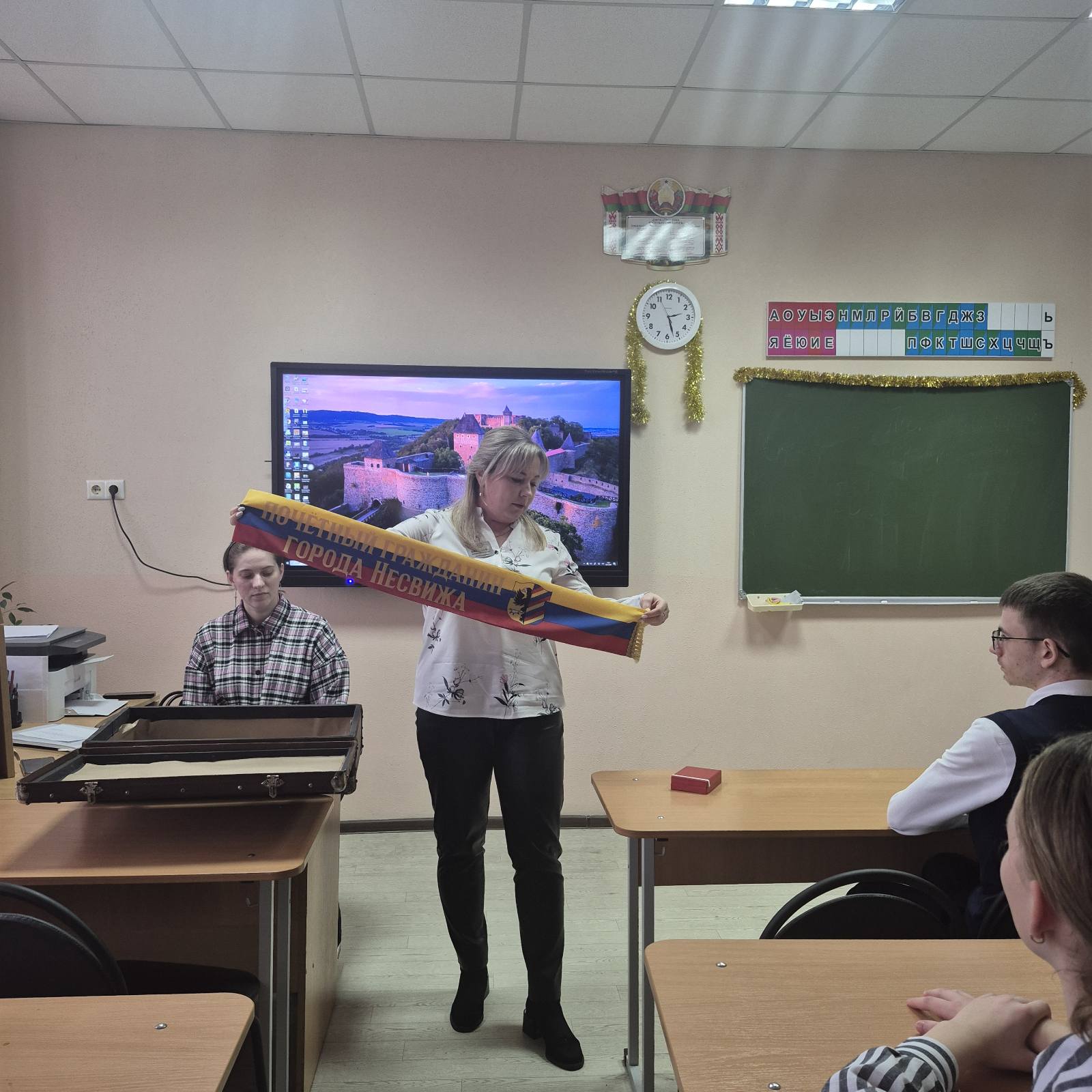 12.2025г. В рамках информационно-образовательного проекта «ШАГ», в группе Д-14 специальности «Дошкольное образование», прошел информационный час: «Быть достойным гражданином Республики Беларусь – значит знать и уважать историю своей страны, белорусского народа». Краеведческий музей – место, где встречается настоящее и прошлое. Приглашенные гости, научные сотрудники государственного учреждения «Несвижский краеведческий исторический музей», Жабчиц Полина Ивановна и Бирюкова Татьяна Михайловна, провели экскурсию в историческое прошлое нашей страны. А так же познакомили с новым проектом «Музей в чемодане». Беседа была интересной и познавательной.