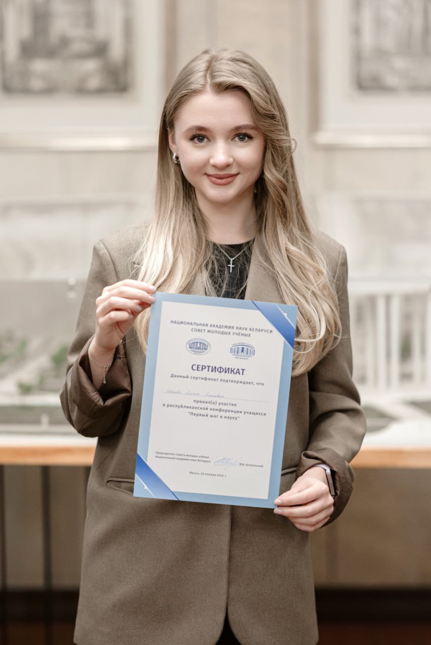 20 января в Национальной академии наук прошла III республиканская конференция учащихся «Первый шаг в науку», в работе которой приняло участие около 500 юношей и девушек со всех областей Беларуси. Конференция, приуроченная ко Дню белорусской науки, включает в себя ряд мероприятий. На пленарном заседании молодые ученые НАН Беларуси представили доклады об актуальных направлениях развития отечественной науки и достижениях в области физики, космоса, экологии и этнографии. Кроме этого, участники конференции могли ознакомиться с выставкой научно-технических разработок молодых ученых. На заседаниях секций начинающие исследователи представили результаты своих научных изысканий. В работе секции «Искусствоведение, этнография, фольклор» приняла участие учащаяся Г-27 группы Долгая Варвара (научный руководитель Мацель Е.А.), секции «Литературоведение» - учащаяся И-21 группы Иванова Алина (научный руководитель Рацкевич Е.М.). Доклад Ивановой А. был отмечен дипломом II степени.