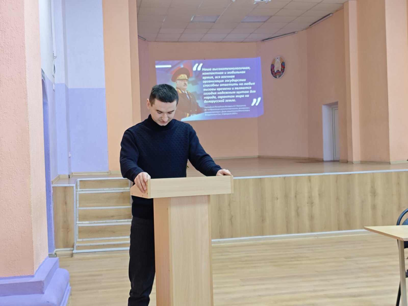 Единый день информирования прошел в колледже 19 февраля. Об оборонительной мощи белорусской армии и патриотическом воспитании присутствующим рассказал руководитель по военно-патриотическому воспитанию А.А.Журавлев