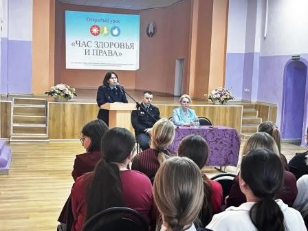 8 апреля учащиеся 1-2 курсов колледжа приняли участие в открытом уроке «Час здоровья и права», который проходил во всех учреждениях образования нашей страны в рамках межгосударственной акции «Неделя здоровья и права в Содружестве Независимых Государств». В качестве компетентных собеседников для его проведения были приглашены следующие спикеры: старший помощник прокурора Несвижского района Тимофеенко А.Д. и временно исполняющий обязанности начальника инспекции по делам несовершеннолетних Несвижского РОВД Левшик А.С.