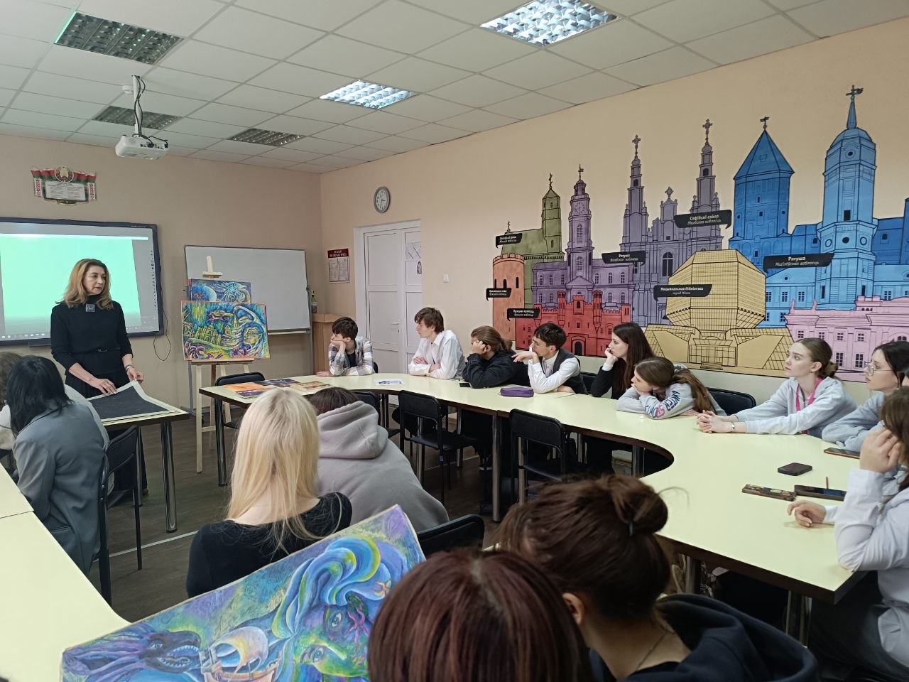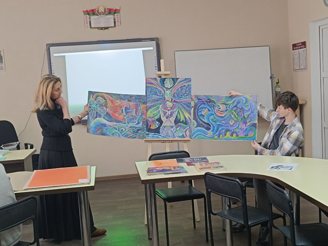 Для учащихся специальности «Дизайн графический» 8 апреля прошла диалоговая площадка «Территория творчества». Она была посвящена знакомству с работой учителя в Несвижской детской школе искусств. Учащиеся просмотрели презентацию о школе искусств, увидели коллекцию работ из фондов школы, книги и каталоги творческих конкурсов. Учащиеся Г-17 и Г-27 групп (многие из них сами недавние выпускники художественных школ) смогли по-новому посмотреть на возможности работы с детьми, обсудить особенности развития их творческих способностей. Также узнали, что, кроме уроков, есть и другие важные формы работы – выставки работ учащихся, участие в престижных конкурсах, пленэрная практика.