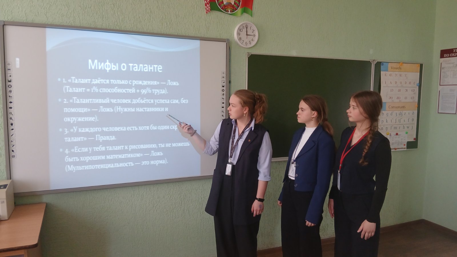 Воспитательный час прошёл в форме интерактивной беседы с элементами тренинга. Учащиеся развенчали популярные мифы о таланте: например, что он даётся только с рождения или что «талантливый человек талантлив во всём». Выяснили: настоящий талант — это сплав задатков, упорного труда и подходящей среды. Многие удивились, обнаружив у себя способности, которые раньше не считали «талантами»: умение слушать, организовывать друзей или быстро находить потерянные вещи. «Будущее не приходит само — его создают те, кто каждый день делает то, что у них получается лучше всего», — такой вывод вместе сделали участники воспитательного часа.