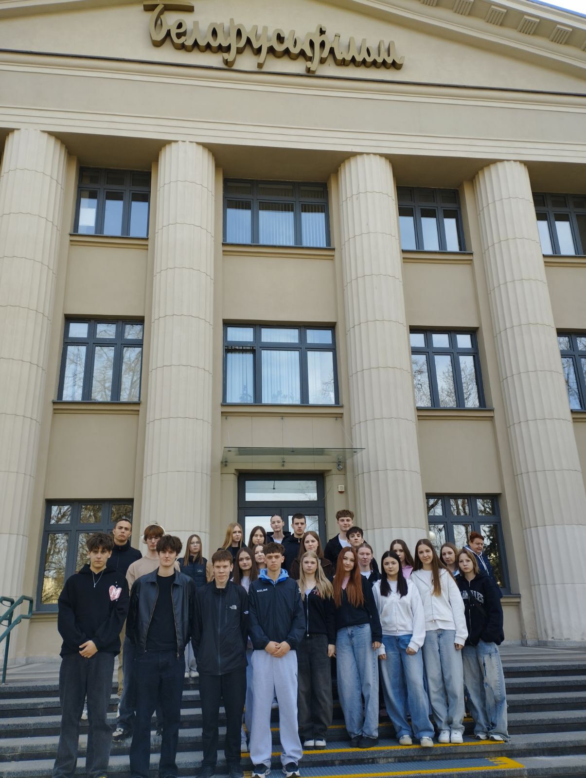 15.04.2026 для учащихся Д-14 и Ф-16 групп была проведена обзорная экскурсия "Беларусьфильм - здесь снимают кино". Квалифицированный гид провел учащихся за кулисы кинопроизводства,, познакомил с процессом создания фильмов и съемками рейтинговых кинопроектов. Учащиеся узнали как создаются декорации и спецэффекты.